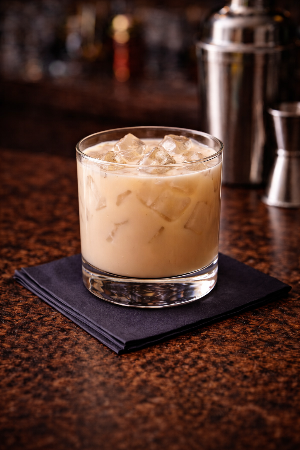 The cocktail combines vodka with Kahlúa, amaretto, and heavy cream. This rich formula creates a drink that tastes like liquid tiramisu or coffee-almond ice cream, where all flavors blend into a smooth, sweet profile, as noted in Difford's Guide.
